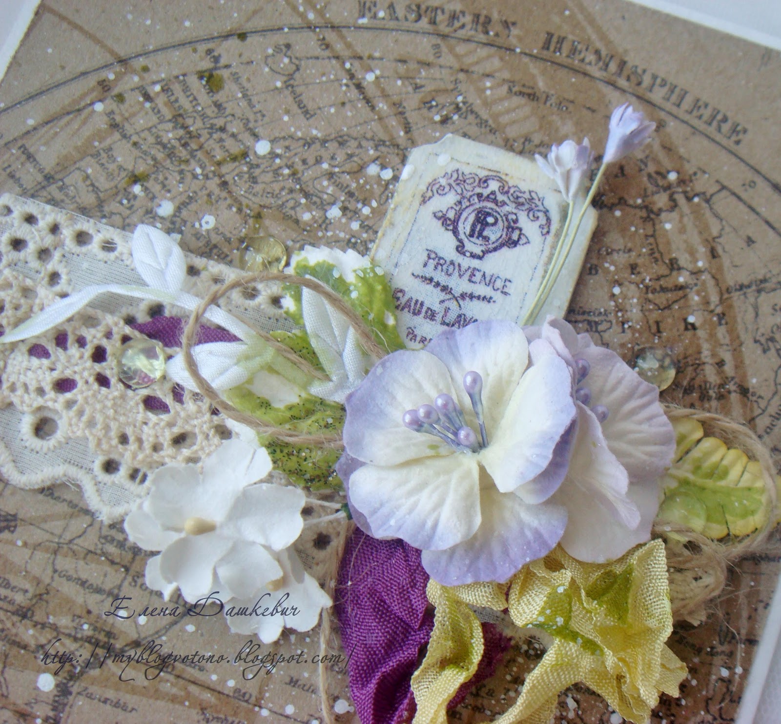 Использовала бумагу из крафт-набора ТХ, добавила конечно разного шитья (мне нравится как шитье с крафтовой бумагой сочетается)), хлопкового кружева, декоративной тесьмы листики, шебби-лент, цветочков, листиков, бечевки ,